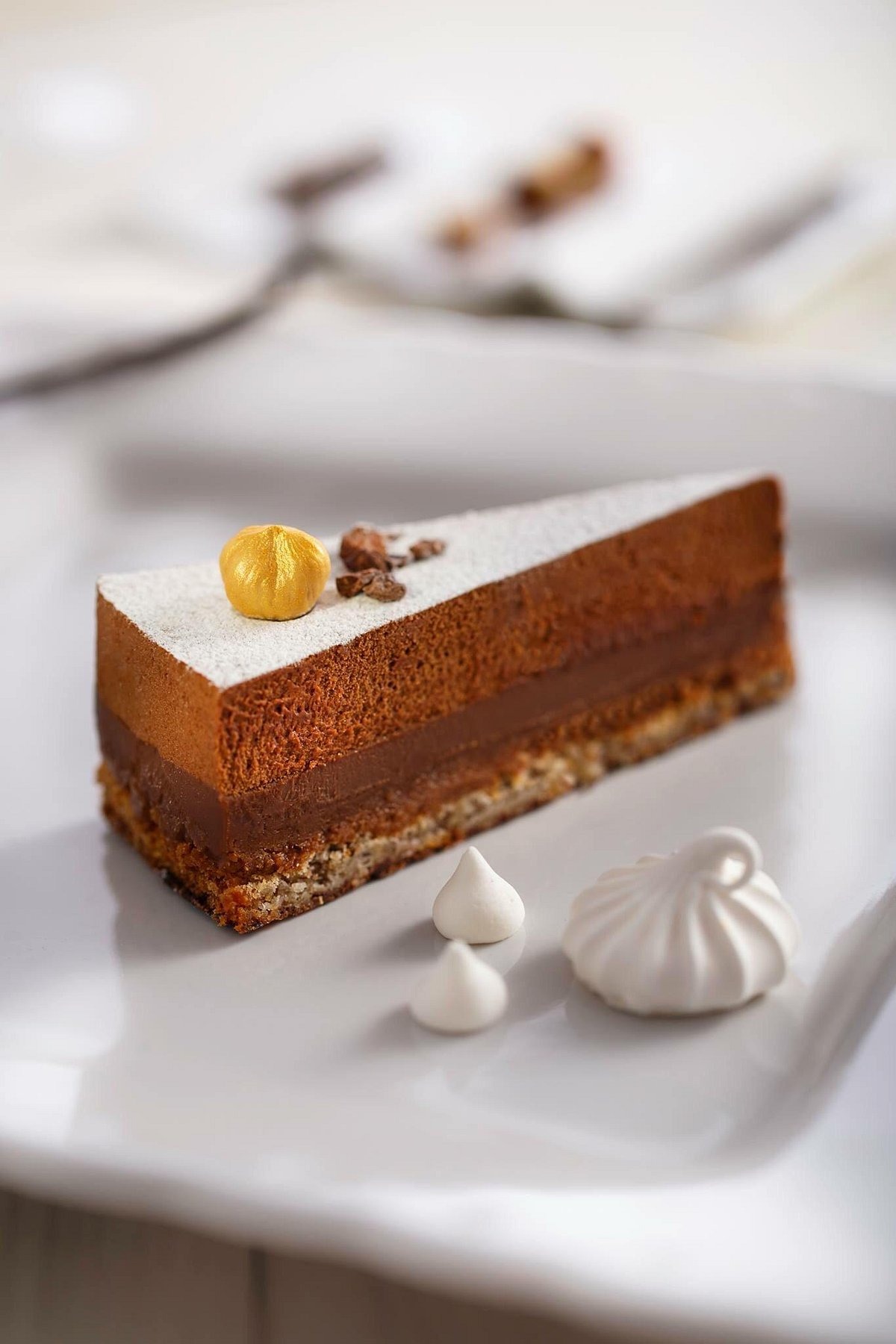 Tort de ciocolată făcut după o rețetă specială, fără făină, servit cu sos de vanilie și fructe de pădure - 200 gr -